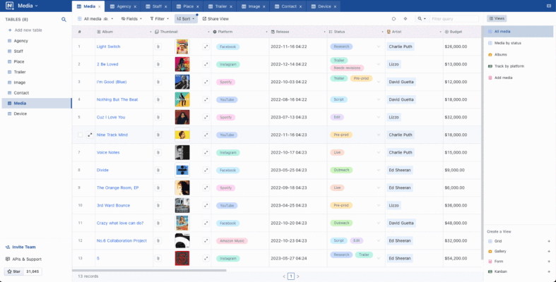 NocoDB is a user-friendly, open-source database platform that lets you work with databases in the form of easy-to-use spreadsheets. It connects to relational databases and transforms them into customizable interfaces, making it simple for teams to create no-code applications.